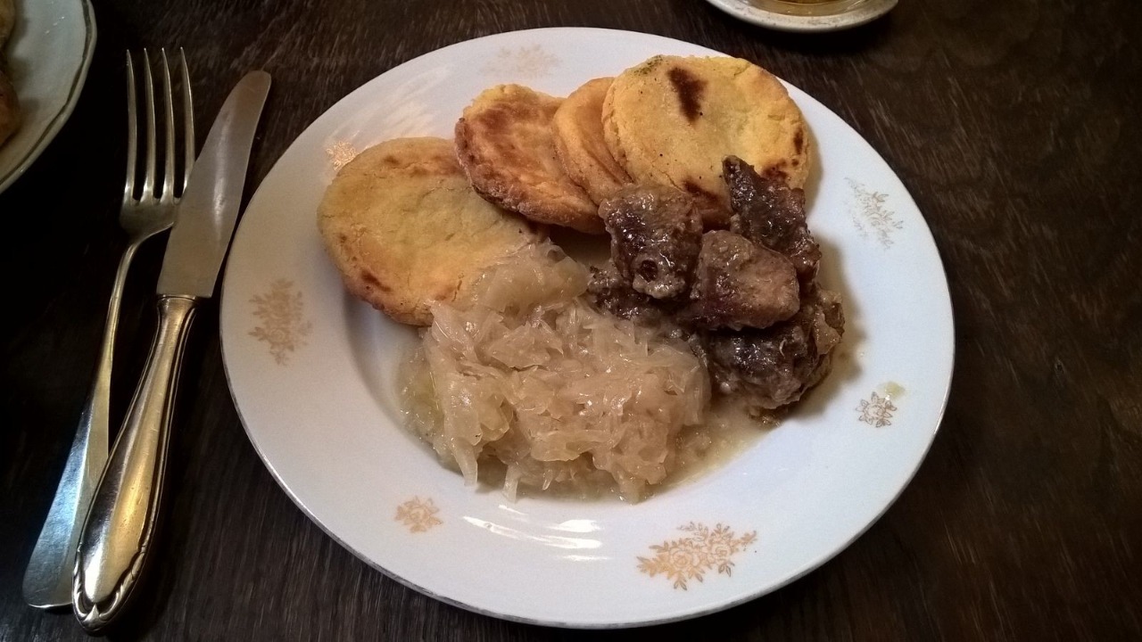My jsme měli štěstí na drškovou polévku (35,-), guláš v chlebu (104,-) a vepřové výpečky s bramborovými plackami a zelím (94,-). Rozhodli jsme se ochutnat výpečky. Jaké bylo mé překvapení, když pan hospodský po přijetí objednávky vytáhl mísu s těstem a na kamnech začal péct bramborové placičky! Čekání se tím sice maličko protáhlo, ale určitě to stálo za to. Maso bylo šťavnaté a pod vidličkou se rozpadalo. Zelíčko bylo správněsladko- kyselé, nebylo rozblácené, naopak pěkně křupalo. No a placičky? Na kamnech? Co dodat, prázdniny na Šumavě v mé mysli ožily okamžitě..